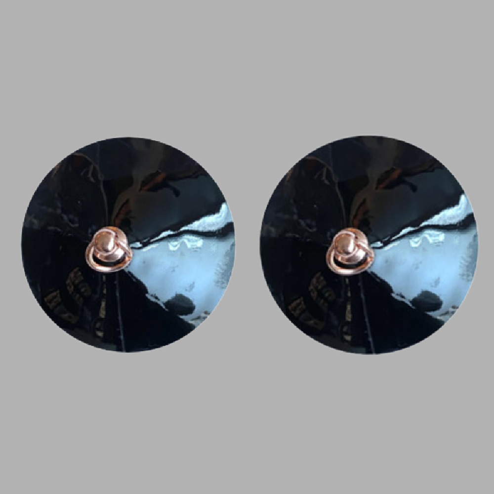 The Shiny Black Pasties with Rings by Kinky Diva are the perfect accessory for fetish fashion and provocative clubwear. Made from glossy vinyl with a diameter of 5.5 cm, they deliver a striking look that enhances any outfit.