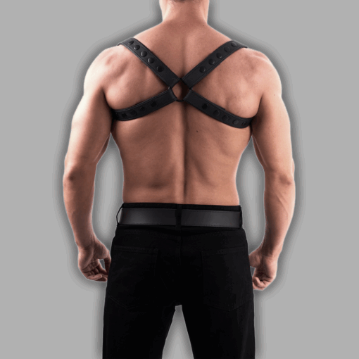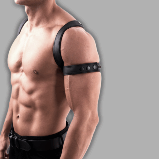 Das Shoulder-Sling-Harness überzeugt durch sein klares Design und hochwertige Verarbeitung. Die Lederriemen verlaufen über Schultern und Oberkörper und betonen die Silhouette. Durch mehrere Einstellmöglichkeiten sitzt das Harness perfekt und bietet hohen Tragekomfort. Variabel einsellbar durch Druckknöpfe.