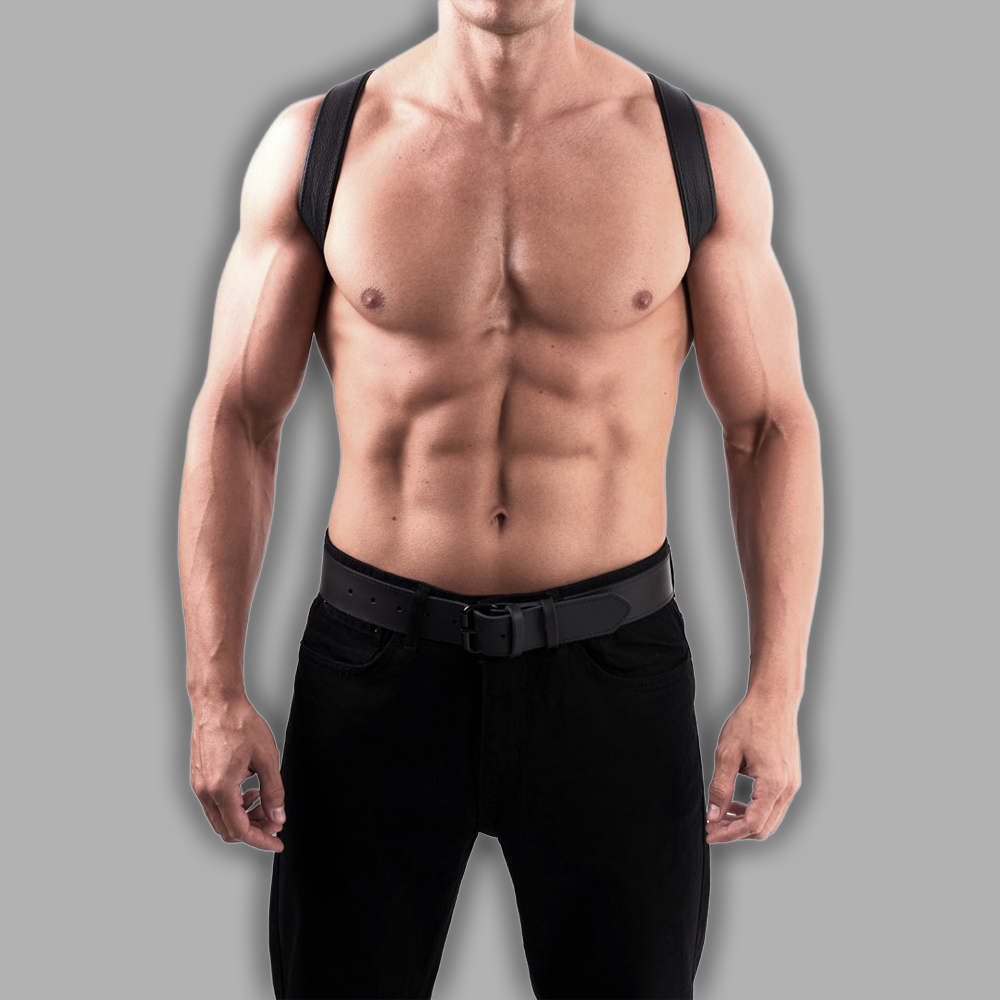 This shoulder sling harness features a clean minimalist design and premium leather craftsmanship. The leather straps run across shoulders and chest creating a striking silhouette. Multiple adjustments allow a perfect comfortable fit.