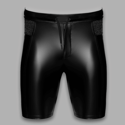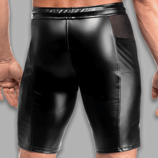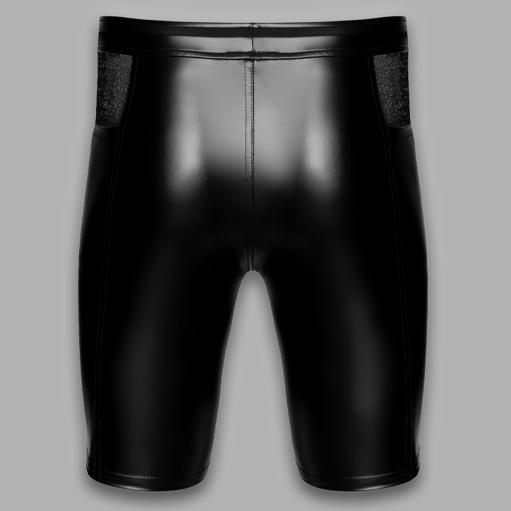 Make a bold style statement with the Onyx Biker Shorts. Their striking mix of smooth power-wetlook and breathable mesh inserts creates a sharp, modern vibe. The mesh adds a subtle shimmer, while the glossy finish highlights your contours. Transparent mesh panels create intentional accents without softening the masculine edge. A front zipper and the sleek, athletic cut give the shorts a clean, dynamic shape. The elastic material moves with you and delivers high comfort — perfect for club nights, photoshoots, or confident fashion statements.