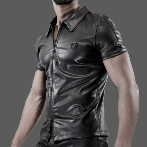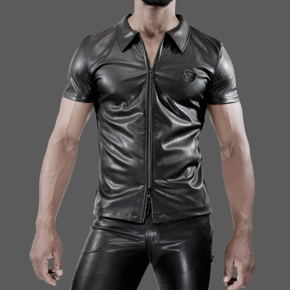 This chic, fetish-style zipped Shirt is ultra-sexy. It is made in incredibly lifelike imitation leather. The quality makes the difference almost unnoticeable at first glance.