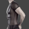 Biker style shirt! The beautiful matte look material fits around the muscles and emphasises them in a fantastic way, while the powernet inserts at either side help the torso to look thinner. The only parts that are wider are the shoulders and the stitching helps to make them look even wider.