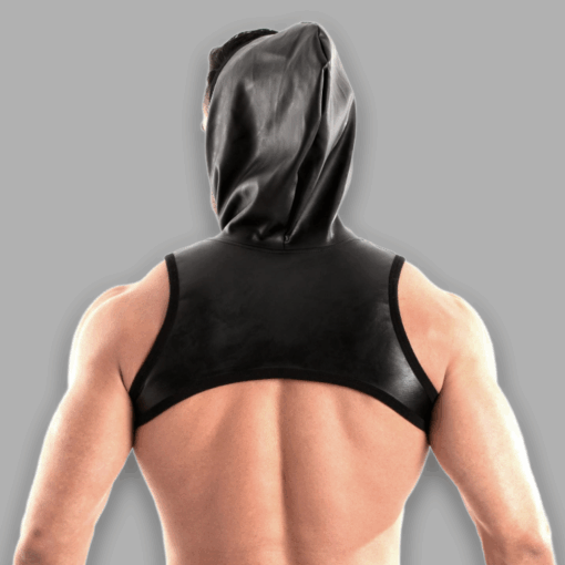 The Kinky Croptop with Hoodie & Zip Pocket by TOF Paris is a bold fusion of fetish fashion and urban style. Designed to accentuate the male physique, this statement crop-top highlights the chest, shoulders, and arms while the integrated hood adds a dark, dominant, and mysterious edge.