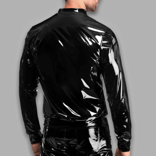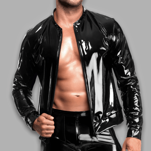 Make a commanding entrance with the Voltage PVC Jacket, designed entirely from glossy PVC for a bold and futuristic aesthetic. Its mirror-like finish delivers high visual impact, while the structured silhouette, stand-up collar, and front zipper add sharp, modern definition. Ribbed cuffs and waistband ensure a clean, secure fit, making this jacket ideal for nightlife, editorial-inspired looks, or any moment when you want to express fearless individuality.