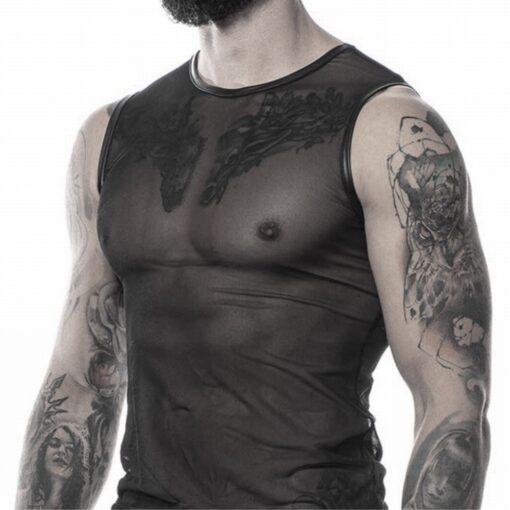 Muscleshirt, gefertigt aus dehnbarem, mattem Wetlook-Material und Netz-Einsatz.