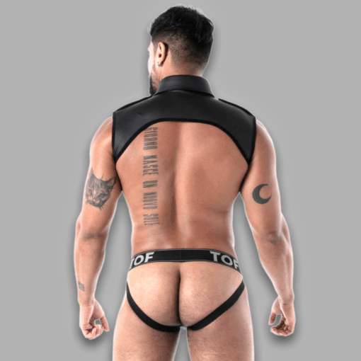 A bold, body-shaping neoprene harness with a refined shirt collar that instantly elevates your look into a confident and sexy fashion statement.
