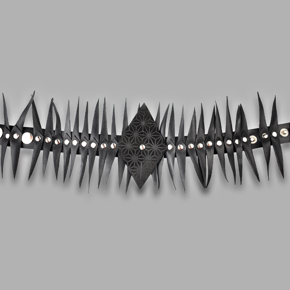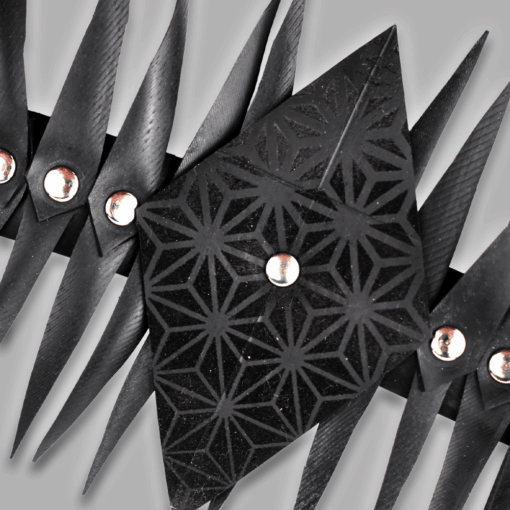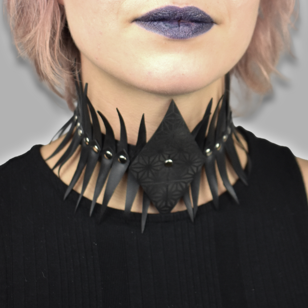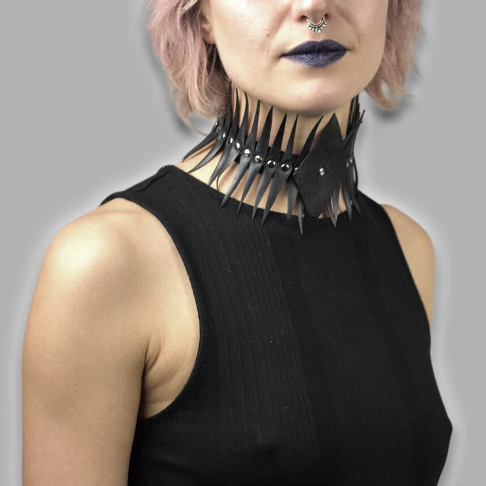 Sustainable rubber choker made from upcycled tyre tubes with unique blue stripe accents. Waterproof, adjustable (28–39 cm), and handcrafted – a bold gothic and fetish-inspired statement piece.