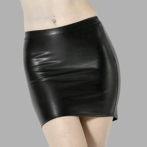 Made from high-quality faux leather with slight stretch, the skirt fits like a second skin, enhancing the silhouette. The smooth, slightly glossy surface creates a refined wetlook effect that subtly reflects light for a premium appearance.