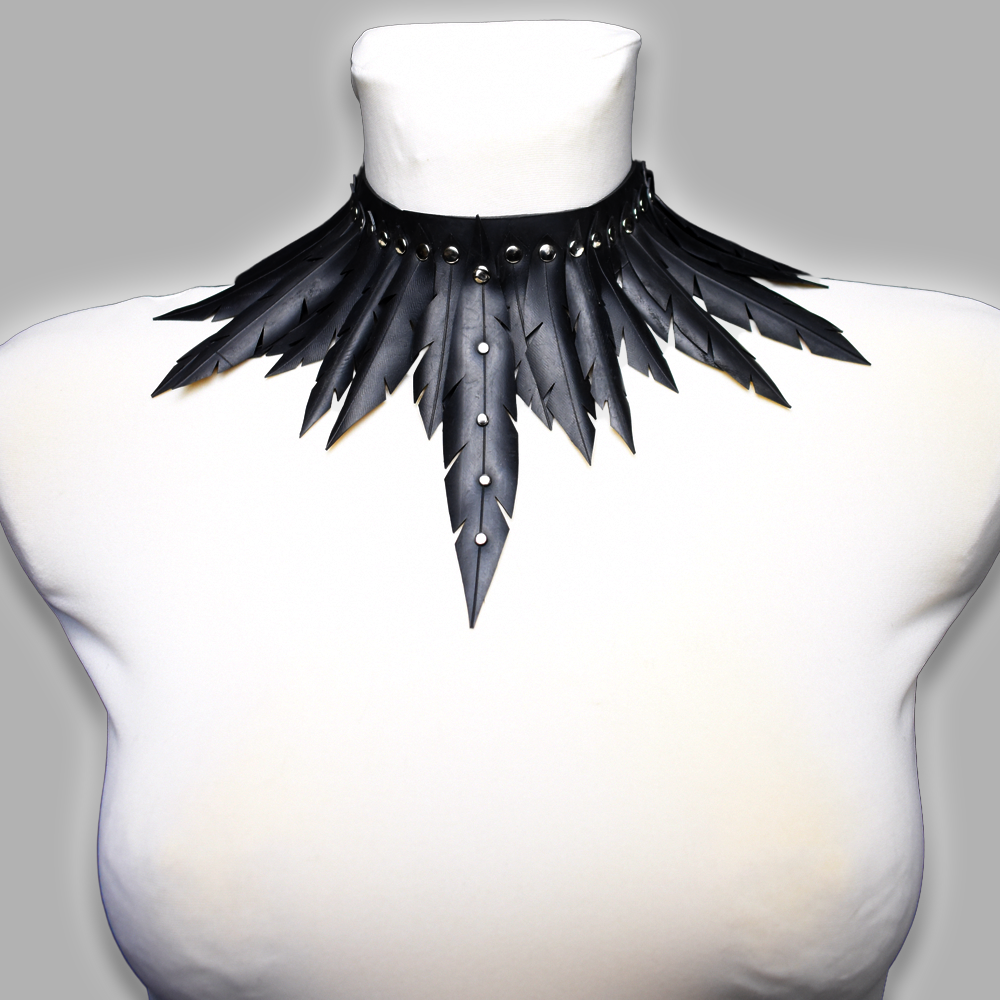 The Rubber Choker Jungle Calling by Reblack Upcycled is a striking piece of wearable art inspired by organic leaf shapes and natural structures. This bold gothic accessory merges sustainable upcycling with powerful aesthetic expression.