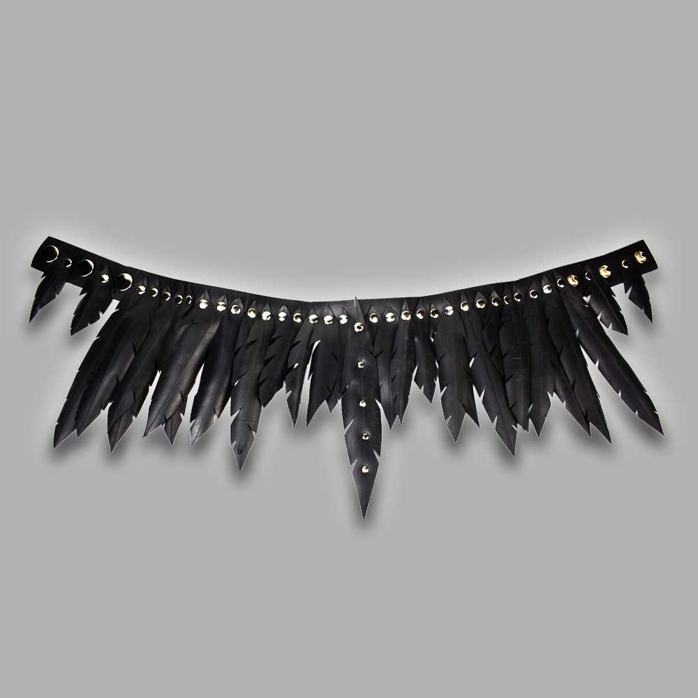 Crafted from repurposed motorbike and bicycle tyre tubes, the choker features a deep black finish with distinctive texture. The sculptural leaf details create a strong visual presence and elevate any outfit with a dramatic, alternative edge. The slightly heavier feel enhances the premium quality and durability of the piece.