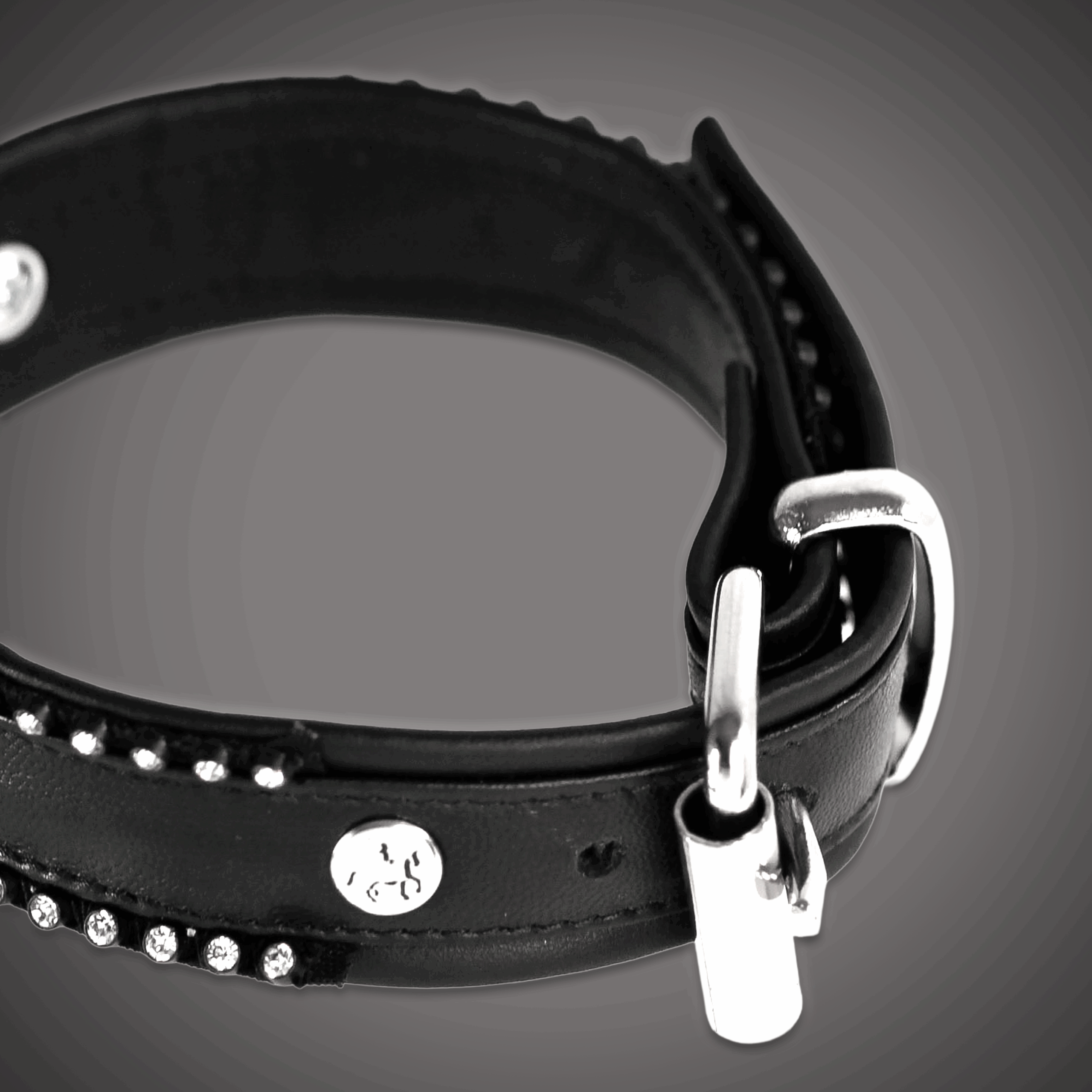 Echtleder Choker – 3,0 cm – mit klar funkelnden Kristallreihen (4mm) & verschraubtem O-Ring – Elegant Sparkle Luxury. Dieser Choker verbindet feinstes Echtleder mit edlem Funkeln und einem Hauch luxuriöser Sinnlichkeit. Gefertigt aus leicht glänzendem Premium-Rindsleder – sowohl außen als auch innen – schmiegt sich das Halsband weich und warm an die Haut an. Das Leder entwickelt mit der Zeit eine wunderschöne Patina und verleiht dem Schmuckstück eine dauerhaft edle Aura. An den oberen und unteren Kanten laufen zwei Reihen klarer Kristallsteine entlang, sorgfältig eingefasst und stabil im Paspelband vernäht. Die Steine funkeln brillant und setzen feine Lichtakzente, die das natürliche Lederfinish perfekt ergänzen. Die Kombination von warmem Glanz des Leders und dem präzisen Funkeln der Kristalle erzeugt einen eleganten, femininen Look mit luxuriösem Charakter. Im Zentrum sitzt ein polierter, verschraubter Metall-O-Ring, der den funkelnden Rahmen sanft ankert. Er fügt dem Design einen ruhigen, sinnlichen Fokus hinzu, ohne die Eleganz des Gesamtbildes zu brechen. Die dezente Dornschließe sichert einen perfekten Sitz. Die Schwarzer Reiter Logo-Niete garantiert echte Atelierqualität – handgefertigt in Berlin. Passend dazu: Echtleder-Cuffs & Leine mit klaren Kristallen. Einsatz: elegante Fetish-Looks, luxuriöse Abendstyles, romantische Szenen. Ein Choker, der Glanz, Wärme, Kristalllicht und echter Lederluxus harmonisch vereint.