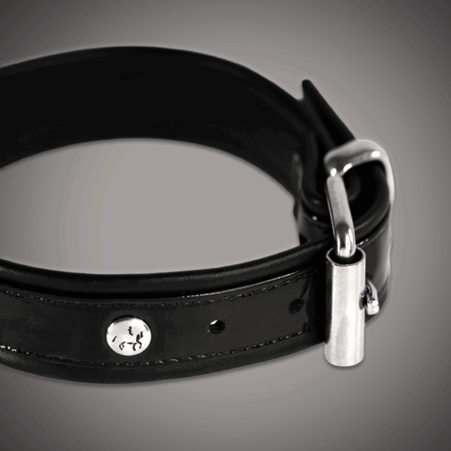 Sizes: Three neck widths. Perfectly matched with: the corresponding lacquer leather cuffs (3.0 cm & 7.0 cm wide) and the lacquer leather leash from the same series.