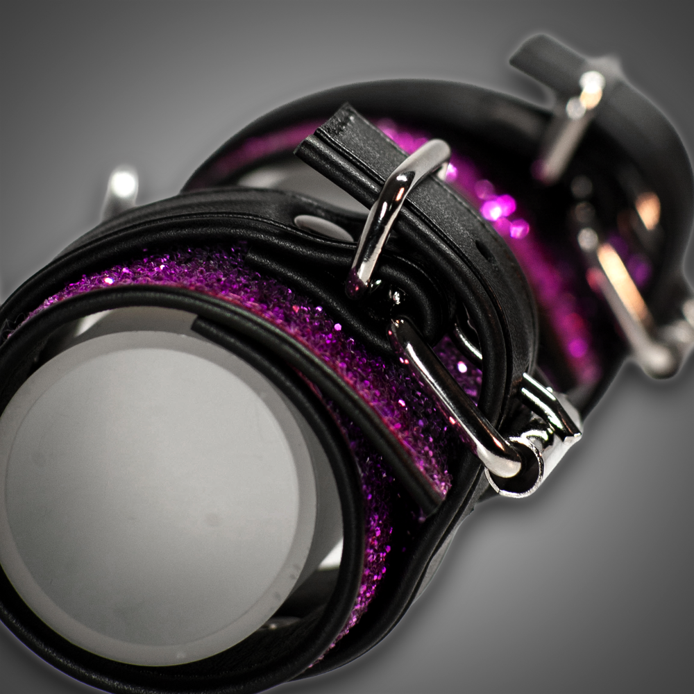 Step into the world of our Diamond Series – made for those who don’t just wear accessories but create moments. These cuffs are a true glam statement: bold, sparkling and unmistakable. The fuchsia diamond surface catches the light in countless facets, shining intensely in daylight, club lights or festival spots. The 7 cm width delivers presence and elegance. Soft inner leather and smooth edges ensure comfort, while the solid build reflects premium craftsmanship. The 3 cm top strap, crafted from the same premium leather as the inside, creates a striking black–fuchsia contrast. The screwed-in O-ring is perfectly framed, and the sturdy double carabiner is included.