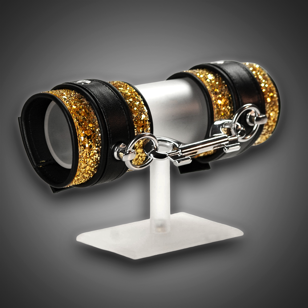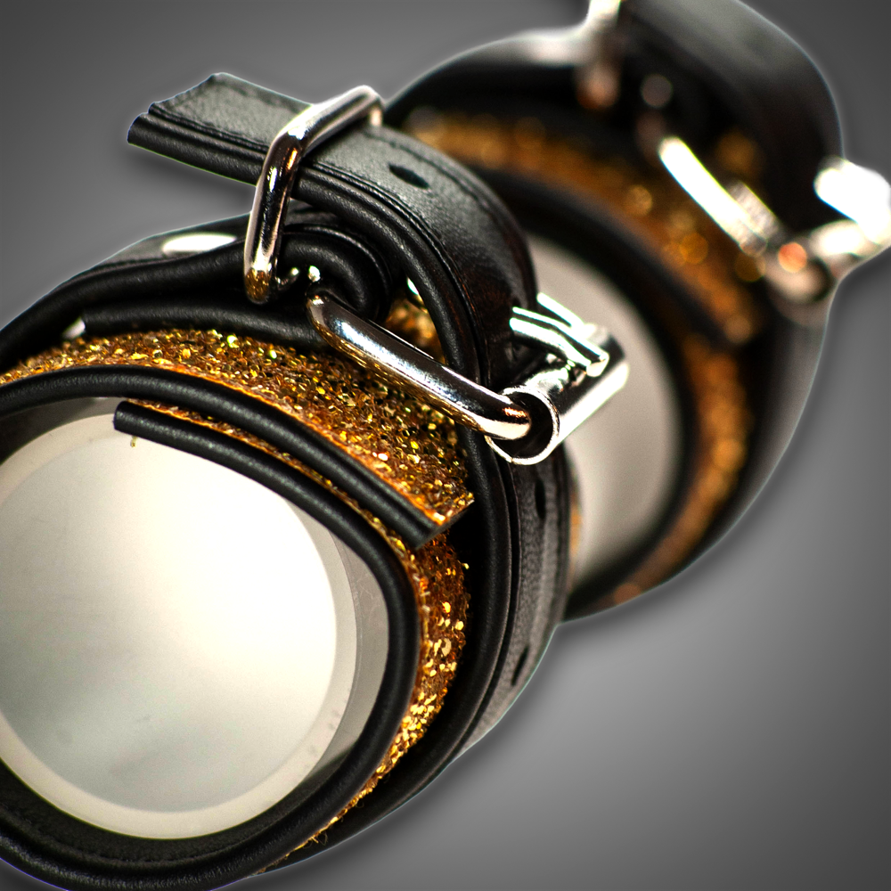 Tauche ein in die Welt unserer Diamond Serie – für alle, die nicht einfach Accessoires tragen, sondern Momente inszenieren. Diese Cuffs sind ein echtes Glam-Statement: laut, funkelnd, unverwechselbar. Das Gold Diamond-Obermaterial bricht das Licht in unzählige Facetten und zieht sofort Blicke auf sich – bei Tageslicht, Clublicht oder Festivalspot. Die 7 cm breiten Cuffs stehen für Präsenz und Eleganz. Weiches Innenleder und sauber geschliffene Kanten sorgen für angenehmen Komfort, während die stabile Konstruktion die hochwertige Fertigung unterstreicht. Der 3 cm breite Oberstreifen aus Premium-Echtleder, gefertigt aus dem gleichen weichen Material wie die Innenseite, bildet einen modernen Schwarz‑Gold‑Kontrast. Der verschraubte O-Ring sitzt darin perfekt eingebettet und setzt einen klaren, kraftvollen Akzent. Der robuste Doppelkarabiner ist direkt dabei. Diese Cuffs sind für alle, die Mode fühlen, nicht nur tragen – für Nächte voller Energie, starke Looks, Shootings, Partys und Festivals. Wer auffallen will, trägt Diamond. Wer glänzen will, trägt unsere Diamond Cuffs in Gold.