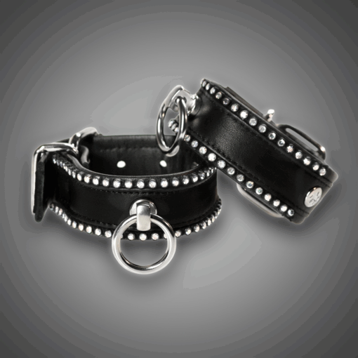 Diese 3,0 cm breiten Premium-Echtleder-Cuffs aus dem Schwarzer Reiter Atelier verbinden klare Linien, dezenten Lederglanz und luxuriöses Kristallfunkeln. Außen wie innen aus weich anliegendem, leicht glänzendem Premium-Rindsleder gefertigt, schmiegen sie sich angenehm an die Haut und entwickeln im Gebrauch eine edle Patina. Entlang der oberen und unteren Kante verlaufen zwei Reihen klarer Kristalle, stabil eingefasst und brillant funkelnd. Im Zentrum jedes Cuffs sitzt ein polierter, verschraubter Edelstahl-O-Ring, ideal für kontrollierte Fixierungen und ästhetisches Play-Design. Der mitgelieferte Doppelkarabiner lässt sich dort sicher einhaken. Die 3,0 cm Dornschließe garantiert einen zuverlässigen, dezenten Verschluss. Natürlich unverkennbar durch die Schwarzer Reiter Logo-Niete. Handmade in Berlin – präzise, hochwertig, exklusiv. Passend für Handgelenkumfang: 14,0 cm bis 19,0 cm